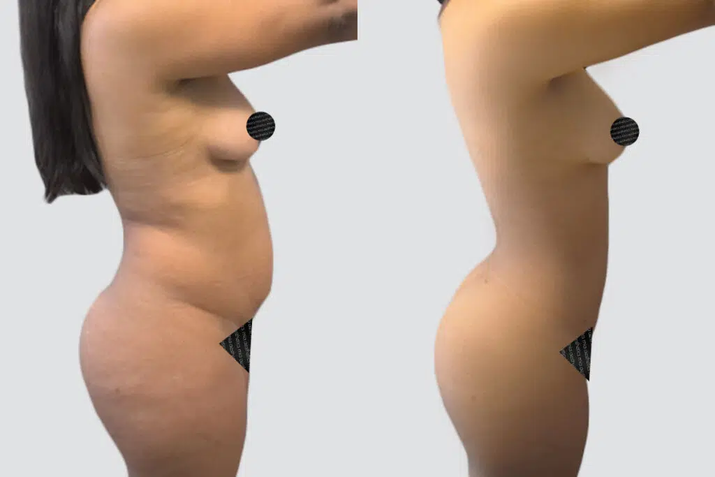This patient had developed a bit of extra belly fat, particularly below her navel, and she wanted it gone. To get as much value from her surgery as she could, she opted for a lipo 360 to refine her midsection along with her stomach.